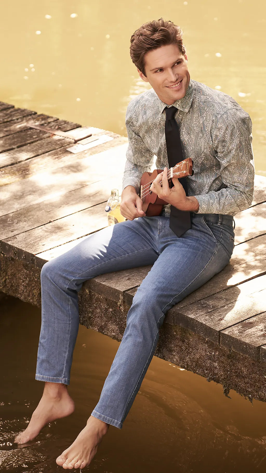 In addition to all year round models, we also offer seasonal items. One highlight for warmer weather is our M|5 Coolmax® EcoMade Denim. Organic cotton spun with Coolmax® EcoMade, which comes from 100% recycled resources, ensures that moisture is quickly wicked away to the outside where it can evaporate. This means that the fabric is quick drying, cooling and extremely comfortable. For the summer months, we also have models made from extra light denim, like our M|5 Light Denim Super Stretch or our M|5 Light Denim Five Pocket Shorts. For the colder weather, we recommend our M|5 Thermolite Jeans, which are wonderfully soft and warming or our Two Tone Stretch Denim Chinos, which are essential for the winter months. Anyone looking for comfort but still wanting a fashionable outfit will definitely get their money’s worth from our M|5 Jersey Denim or our M|5 Jeans Jogger. We don’t want to deprive you in any way of our bestsellers, which you can wear all year round. One of these is our M|5 Super Stretch Performance Denim, which, with their perfect fit and strong look, are ideal for all occasions. These trousers are great for your leisure time, as well as throughout your working day. Our Super Stretch Swing Pocket Denim with a slim silhouette impress thanks to the asymmetrical back pockets which emphasise the modern lines of these trousers - these are only suggestions – take a look at our denims, which are the perfect fit for you, now!