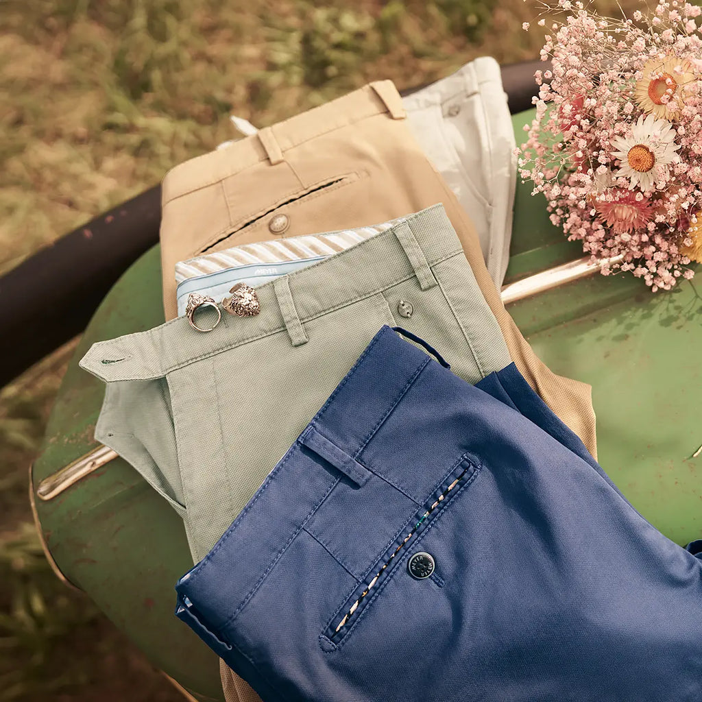Our family business was founded in 1960 in Oberbergischen and is now the leading European specialist for men's trousers. We combine hand-crafted tradition with innovative thinking and progressive action. The modern fits, unique details and outstanding fabrics for which our trousers are known are FAIR & sustainably produced in Europe.