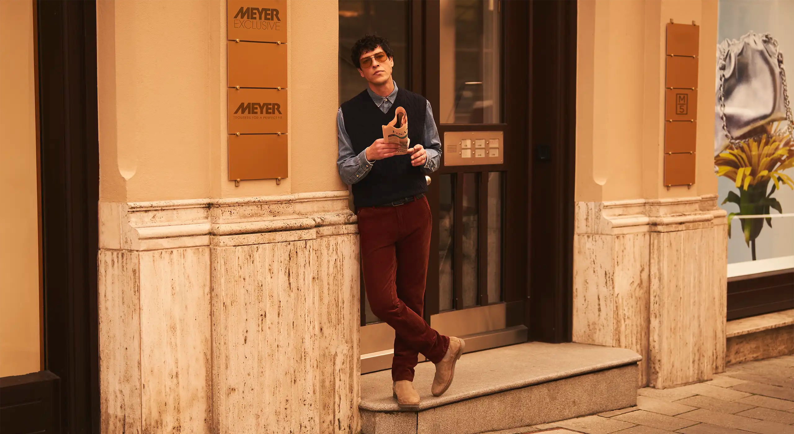 MEYER trousers represent the perfect combination of colours, shapes and textures. Delicately patterned appliqués are combined with outstanding fabrics composed of high-quality twill, an interwoven micro structure or fashionable micro print. Seat pockets with double piping and decorative semicircular topstitching are combined with sumptuous lining. The integrated zip-up security pocket is further testament to the care and attention with which MEYER trousers are made. Elegant buttons made of corozo, for example, beautifully complement the exclusive overall look. As a trouser specialist, we have been incorporating the knowledge and expertise of our designers in order to develop perfect fits at our own production facilities since 1960. Whether you prefer your trousers to be slim, modern or comfortable, we guarantee the perfect fit!